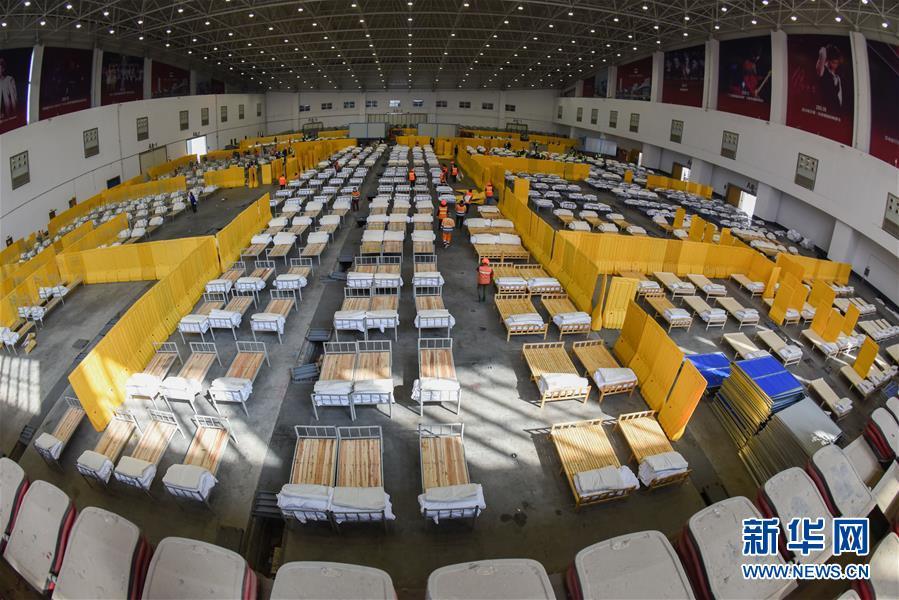 2月4日拍攝的正在加緊改造的武漢客廳方艙醫(yī)院。新華社記者 程敏 攝
